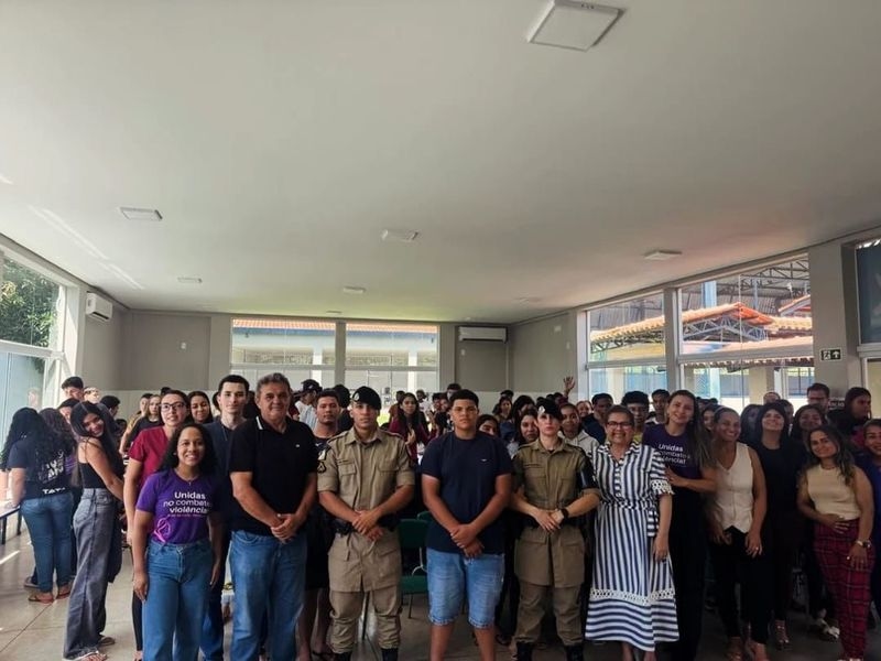 Palestra realizada no Colégio Estadual Presidente Tancredo Neves reuniu comunidade escolar e Patrulha Maria da Penha para discutir direitos e proteção.
