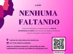 Município prepara agenda intensa com encontros para gestantes, mobilização contra o feminicídio e oficinas culturais.